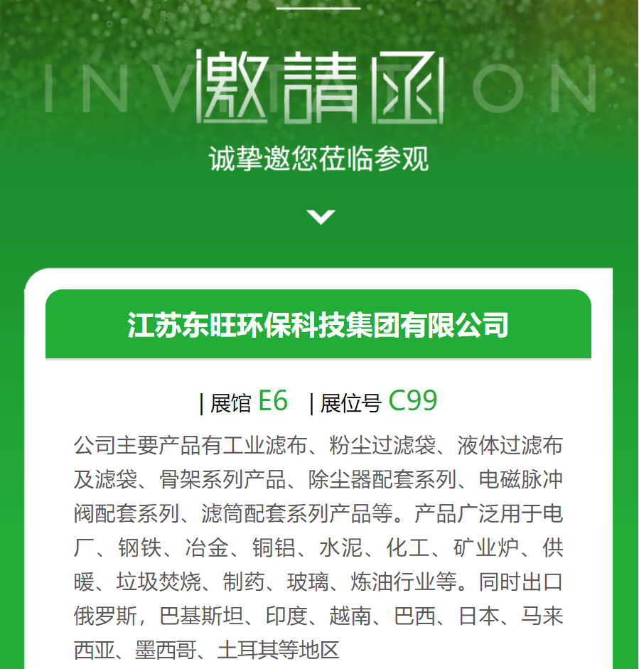 - 2024.4.18-20 第25屆中國(guó)環(huán)博會(huì)東旺環(huán)保在 E6:C99 期待您的蒞臨